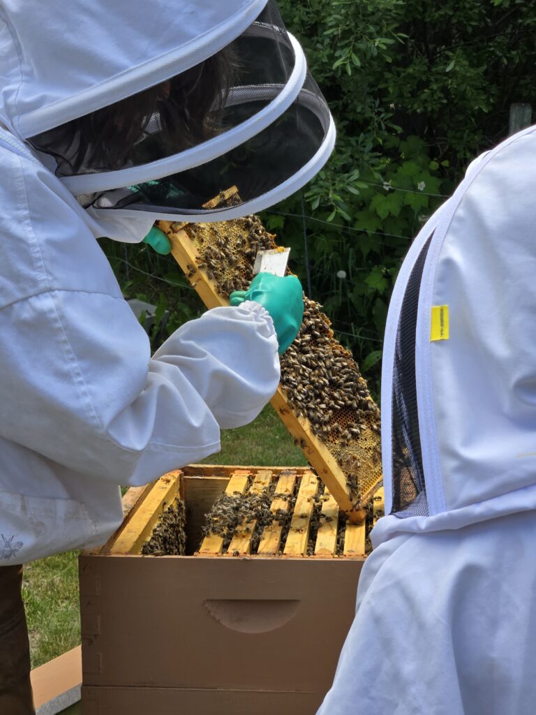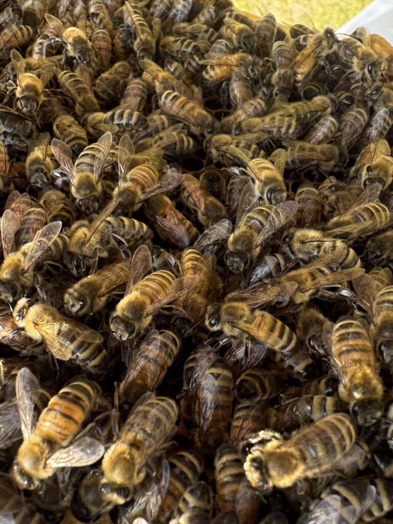 Up close picture of the bee’s. The kid’s had a really fun time during this field trip they got to take turns being Bee Keeper’s and learning all about how the bee’s make honey, and the general process of bee keeping.