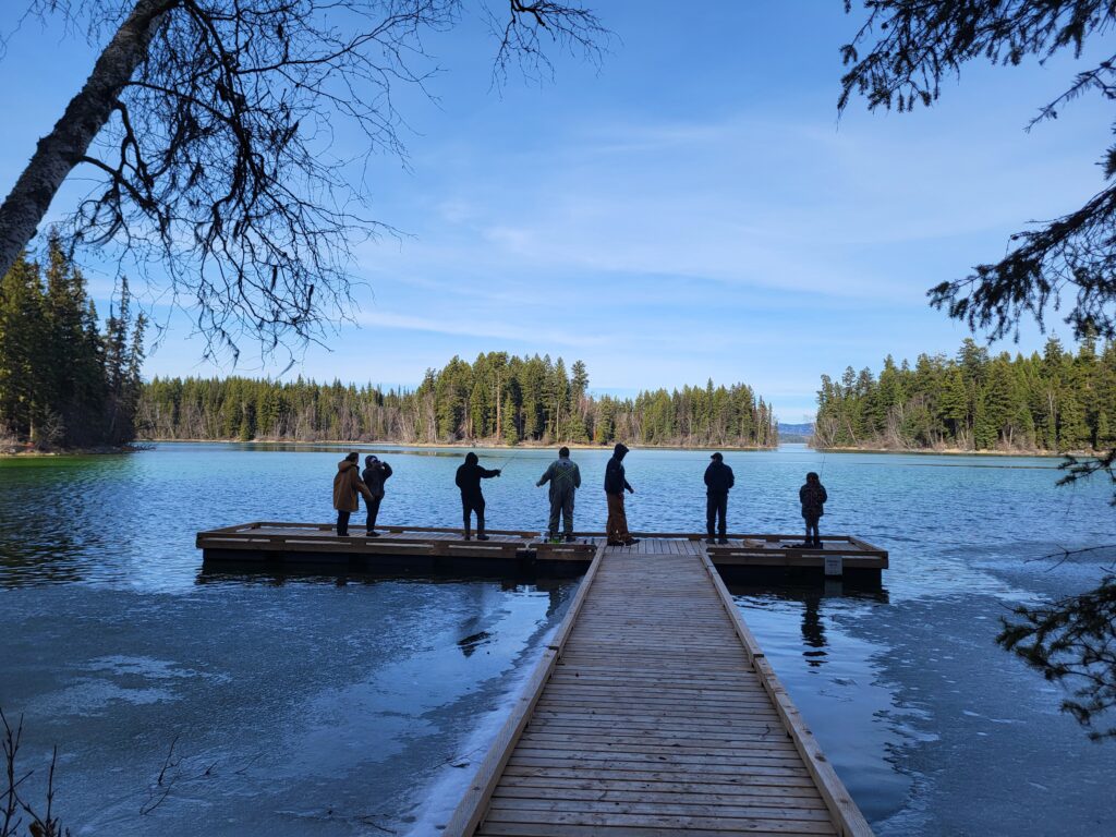 This is my family, my 3 kids, husband, brother’s and sister waiting for the rest of the ice to come off the lake so we can start fishing. This was taken in my back yard on Bridge Lake. It is quite the hike through the back of the property to get to the lake but is so worth it once you get there. This is one of my favourite places.