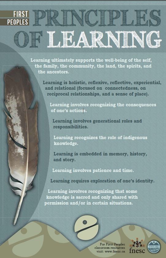 Reading through these principles really shifts how I think about teaching and learning. I’m reminded that learning isn’t just about academics it’s about supporting the well-being of the whole person, including their connections to family, community, and the land. I appreciate how these principles emphasize relationships, reflection, and learning through experience, rather than just memorization or outcomes. It also makes me think more deeply about responsibility how our actions affect others and the world around us.